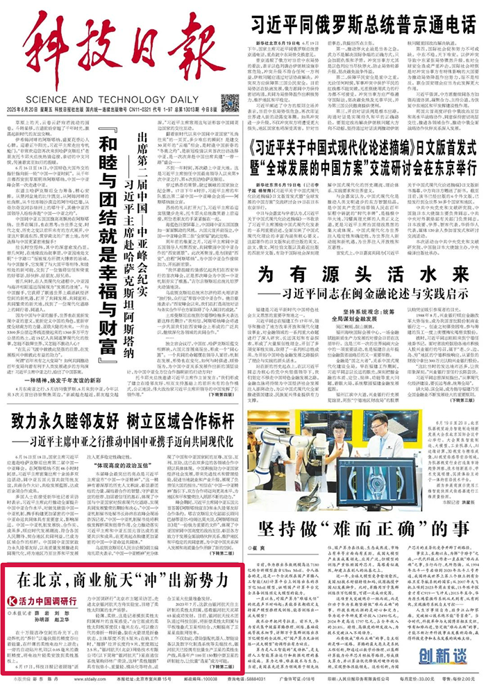 《科技日报》头版:在北京,商业航天“冲”出新势力丨“活力中国调研行”走进银河航天、蓝箭航天