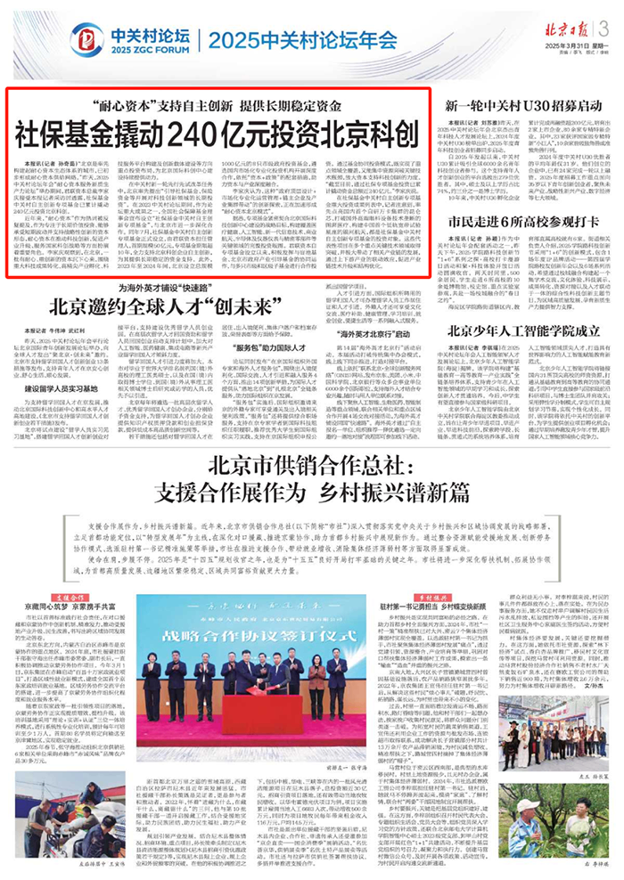 《北京日报》:累计撬动240亿元投资北京科创!这一耐心资本交成绩单