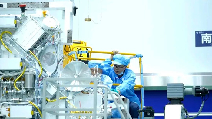 银河航天南通卫星智慧工厂,技术人员在制造卫星